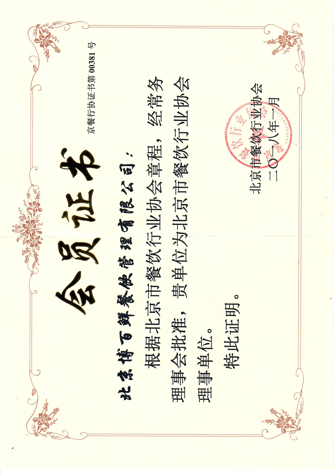 北京市餐饮行业理事单位